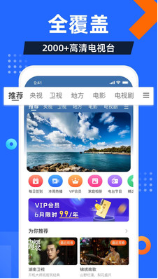 2、衛(wèi)視、地方臺直播應(yīng)有盡有:比如湖南衛(wèi)視(芒果TV)、浙江衛(wèi)視(中國藍(lán)TV)、東方衛(wèi)視、河南衛(wèi)視、江蘇衛(wèi)視。都市頻道、優(yōu)漫卡通,海量節(jié)目預(yù)約準(zhǔn)時提醒
