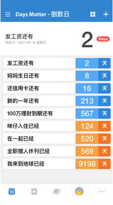 倒數日 · Days Matter是一個幫你記錄生活中重要日子的小工具,例如:發(fā)工資還有多少天?還信用卡還有多少天?戀人生日還有多少天?寶寶出生已經多少天?來到地球已經多少天!