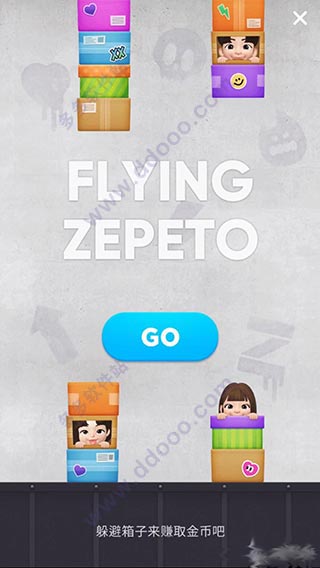 點(diǎn)擊GO開始游戲,通過點(diǎn)擊屏幕讓自己的小頭像躲開箱子