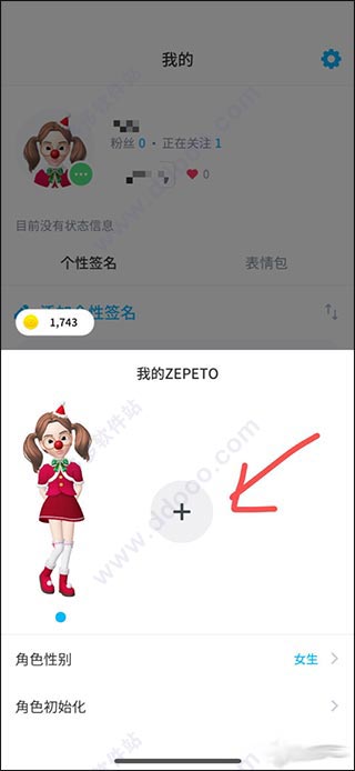 4、然后在我們已有角色的旁邊有一個(gè)加號,點(diǎn)擊這個(gè)加號就可以創(chuàng)建一個(gè)新的人物角色。在創(chuàng)建任務(wù)角色的時(shí)候選擇性別是男性,然后按照自己男朋友的形象自己給他做一個(gè)獨(dú)一無二的崽崽zepeto人物。