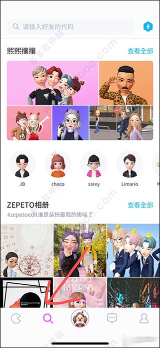 1、在游戲界面的下方有一個(gè)放大鏡的符號,點(diǎn)擊進(jìn)入搜索界面,在上方的搜索框輸入男朋友崽崽zepeto的代碼,點(diǎn)擊搜索。