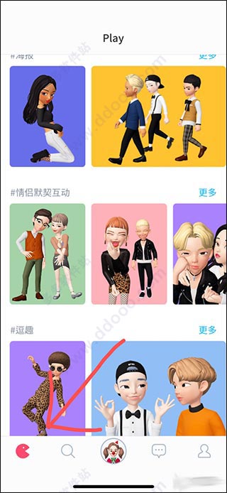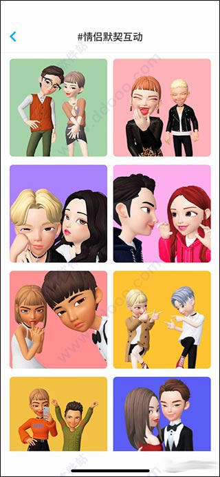 4、往下拉,找到情侶默契互動那一欄,點(diǎn)進(jìn)去選擇一個(gè)喜歡的合影造型。