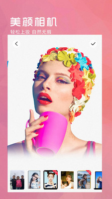 1、自動(dòng)上妝搭配豐富藝術(shù)濾鏡,海報(bào)裝飾等功能