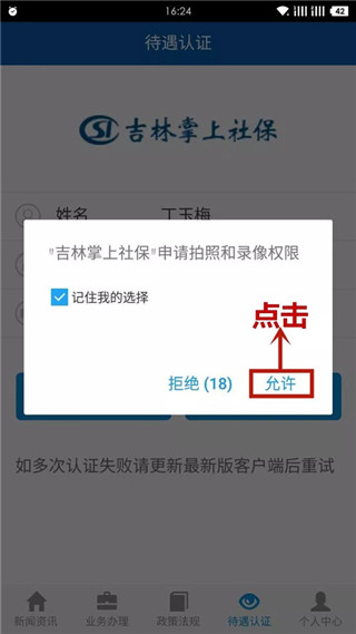 吉林掌上社保APP待遇認(rèn)證說明