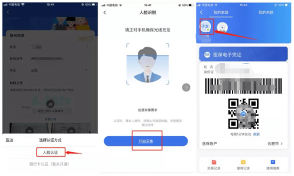 第四步,如果您添加的家庭成員小于16周歲,直接點(diǎn)擊【添加賬戶】按鈕即可完成賬戶關(guān)聯(lián)。如果您添加的家庭成員大于16周歲,點(diǎn)擊【添加賬戶】按鈕,通過“人臉認(rèn)證”后即可完成賬戶關(guān)聯(lián)。之后,點(diǎn)擊該家庭成員圖標(biāo)即可展碼使用。