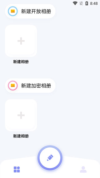 2、下滑可以查看并新建相冊,開放相冊或者加密相冊。