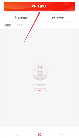 2、這時(shí)候我們?cè)冱c(diǎn)擊正上方直播帶貨的紅色按鈕。