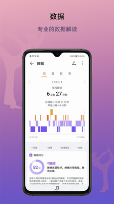 1、配合榮耀智能穿戴設(shè)備,準(zhǔn)確監(jiān)測(cè)不同睡眠階段,提供科學(xué)的睡眠質(zhì)量評(píng)估和改善建議,助你睡的更香。