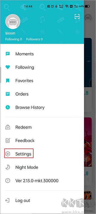 1、在kk下載站下載并打開點擊“MyGames”上方頭像后,點擊“Settings”;