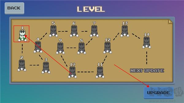 2、游戲為玩家準備了很多關卡,玩家可以點擊升級對自己的角色進行升級;
