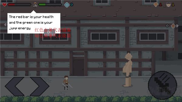 8、左邊的按鈕可以控制角色左右移動,右邊的按鈕可以控制角色進行攻擊;