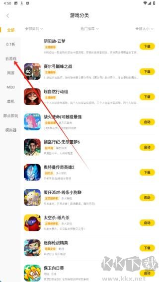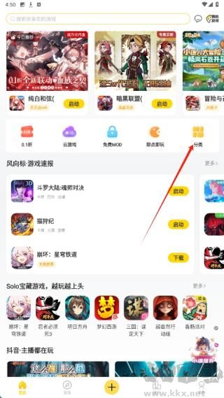 1、在游戲應(yīng)用主界面,點(diǎn)擊右側(cè)分類按鈕,進(jìn)入游戲分類篩選頁面,可按類型查找心儀游戲資源。