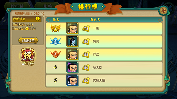 4、戰(zhàn)斗勝利后,若防守方排名高于進攻方,則雙方排名將互換