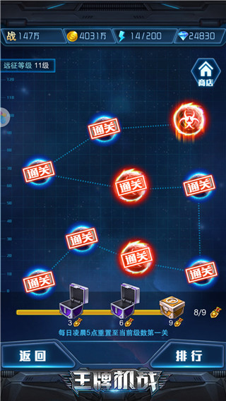 【星河遠(yuǎn)征】玩法就顯得相對簡單了,在該玩法中,玩家通過挑戰(zhàn)關(guān)卡,收集“時空晶石”,兌換指揮官碎片。挑戰(zhàn)按章節(jié)進(jìn)行,每一章有9個關(guān)卡,如果你的戰(zhàn)力足夠高可以直接跳過關(guān)卡收獲獎勵。關(guān)卡會每日刷新,因此每天都可以去挑戰(zhàn)一下。如果你的排名沖進(jìn)了本服前300,還可以每天領(lǐng)取排名獎勵,躺著領(lǐng)指揮官。