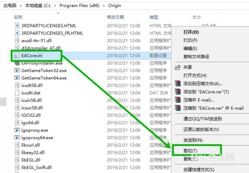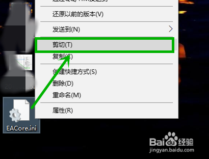 在打開的文件夾,找到【EAcore.ini】文件,然后右擊【剪切】,之后之后【粘貼】到桌面
