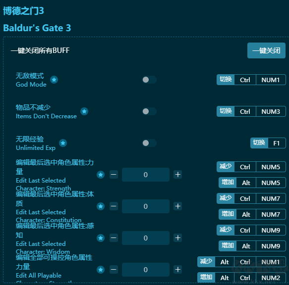 博德之門3十六項修改器是一款非常有趣的游戲輔助工具,強大的十五項功能可以幫助玩家獲得強大的力量,一鍵開啟無敵、無限生命、無限資源等能力,大大降低游戲的難度,讓玩家體驗最齊全的劇情,喜歡的玩家趕緊下載使用起來吧!