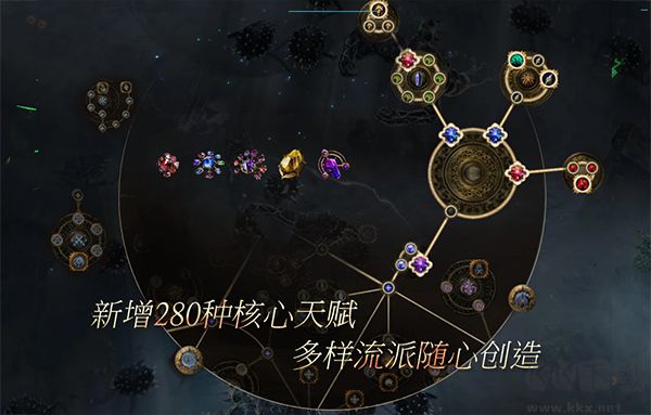 2、天賦樹、有龐大且不分職業(yè)、相互連接的天賦樹,玩家可選本職業(yè)或其他職業(yè)天賦。天賦樹有 “核心天賦”,能大幅改流派,如 “堅毅之心” 讓攻擊不暴擊也不被閃避。珠寶可調(diào)整天賦樹效果。?