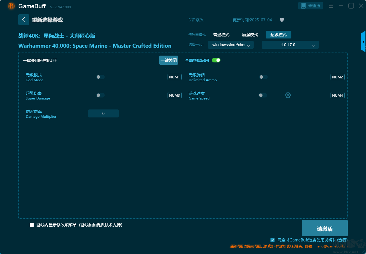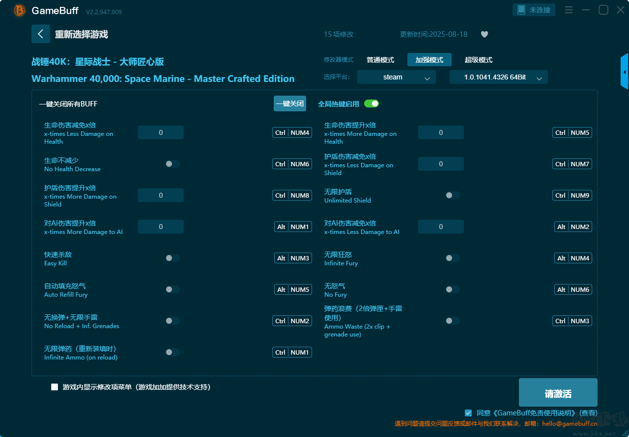 戰(zhàn)錘40K星際戰(zhàn)士10項修改器pc大師匠心版是一款功能強大的游戲輔助器,支持為游戲戰(zhàn)錘40K星際戰(zhàn)士開啟無敵模式、無限生命、無限盾、無限彈藥、無后坐力 & 無限手榴彈、無限狂怒、無限狂怒持續(xù)時間等修改功能。在修改器中你可以在普通模式、加強模式、超級模式三個模式中任意選擇開啟一個模式,體驗全新游玩過程。需要的小伙伴快來KK下載站下載使用吧。