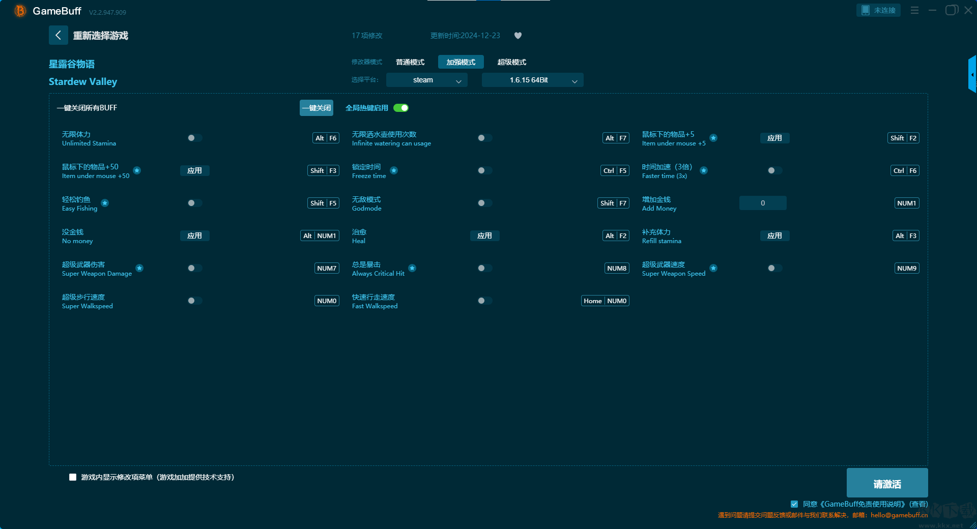 星露谷物語(yǔ)十七項(xiàng)修改器pc新版加強(qiáng)模式修改 buff 功能說(shuō)明