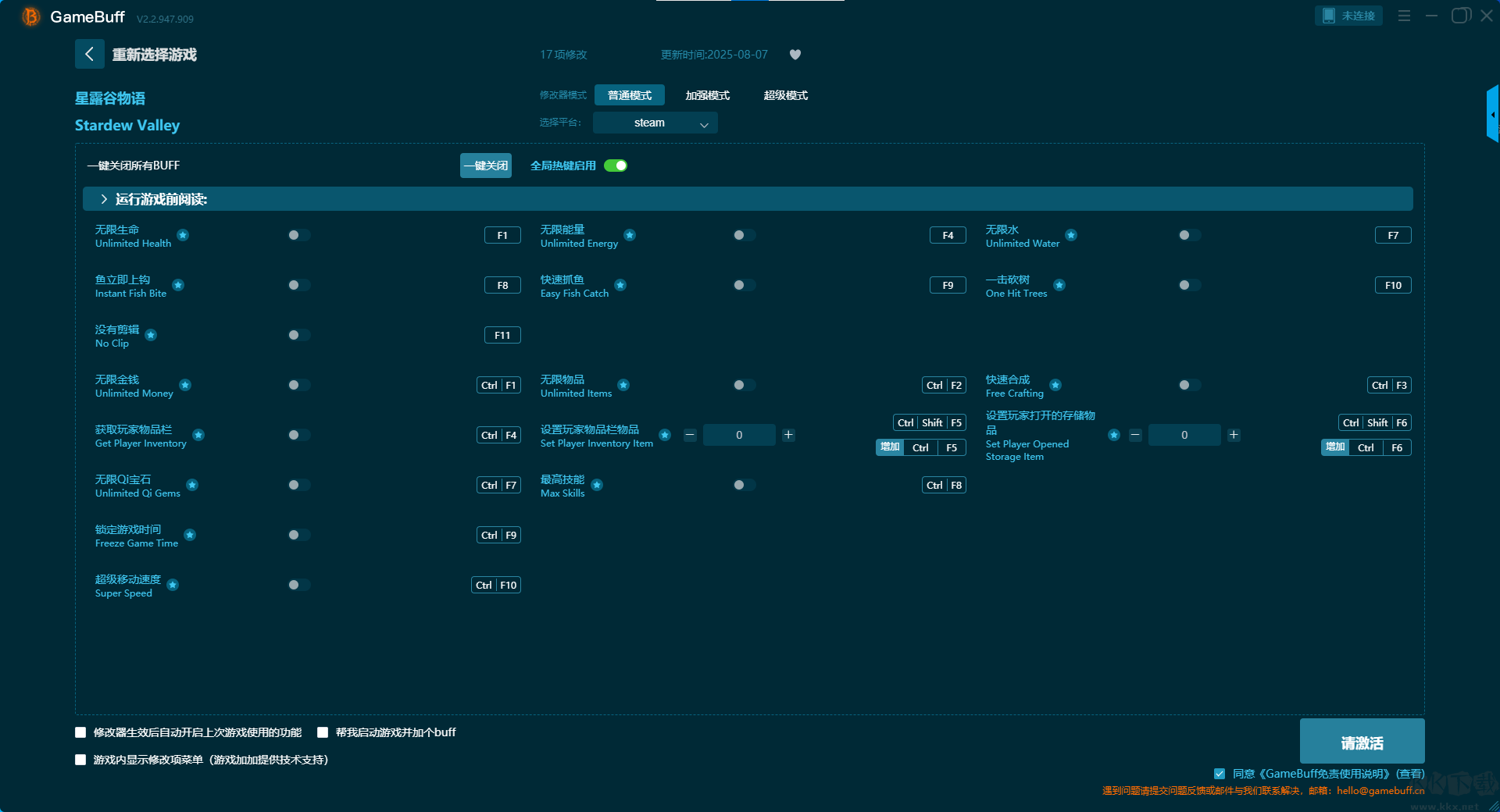 星露谷物語(yǔ)十七項(xiàng)修改器pc新版普通模式修改buff功能說(shuō)明