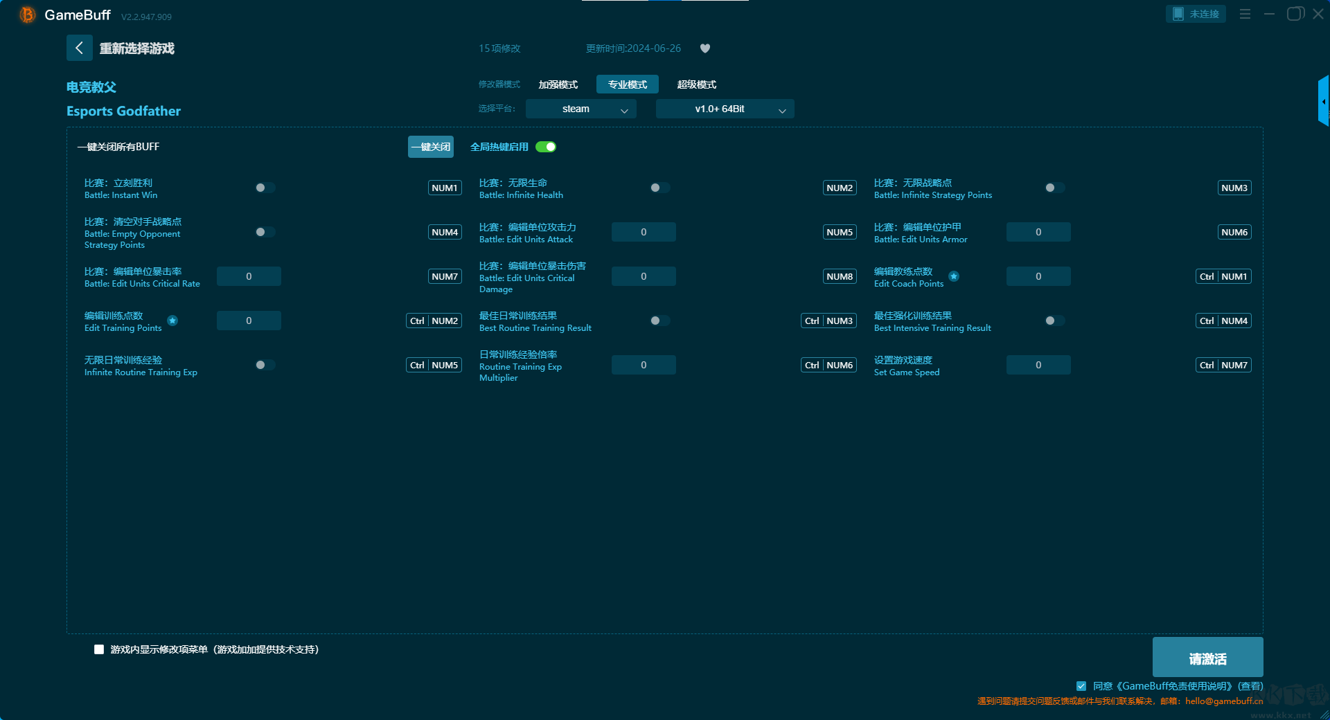 電競教父七項修改器pc終極版專業(yè)模式(支持 15 項修改,不支持聯(lián)網模式)