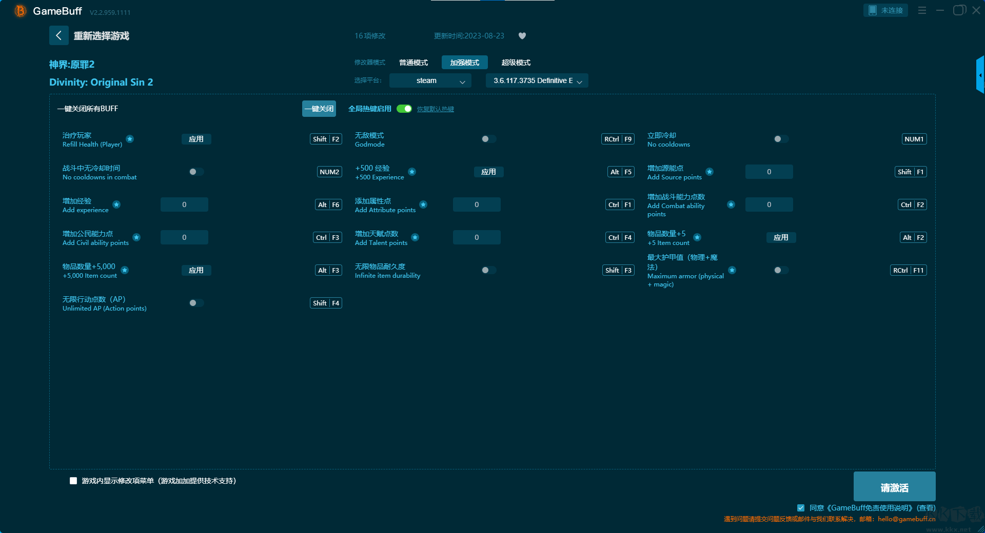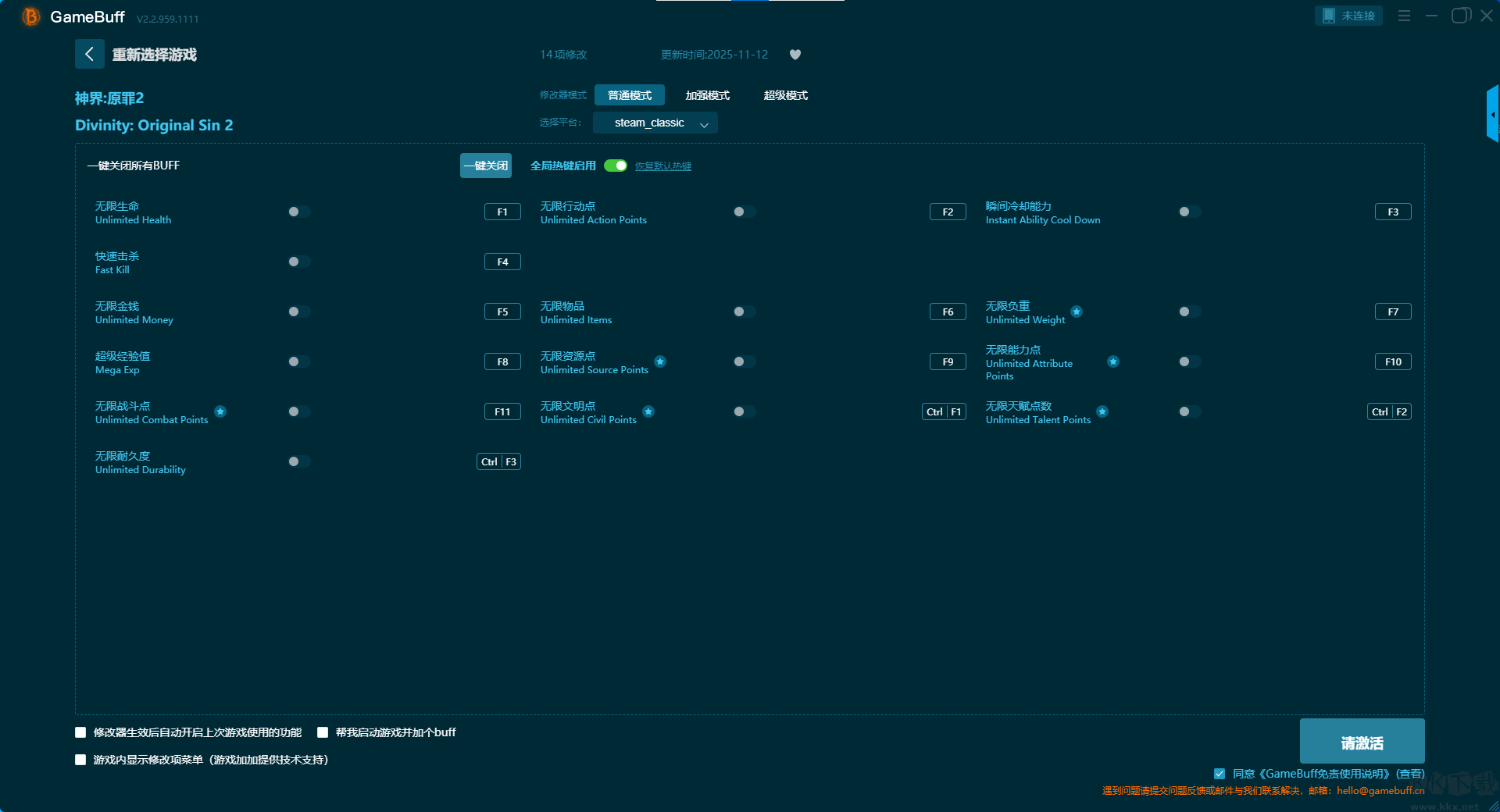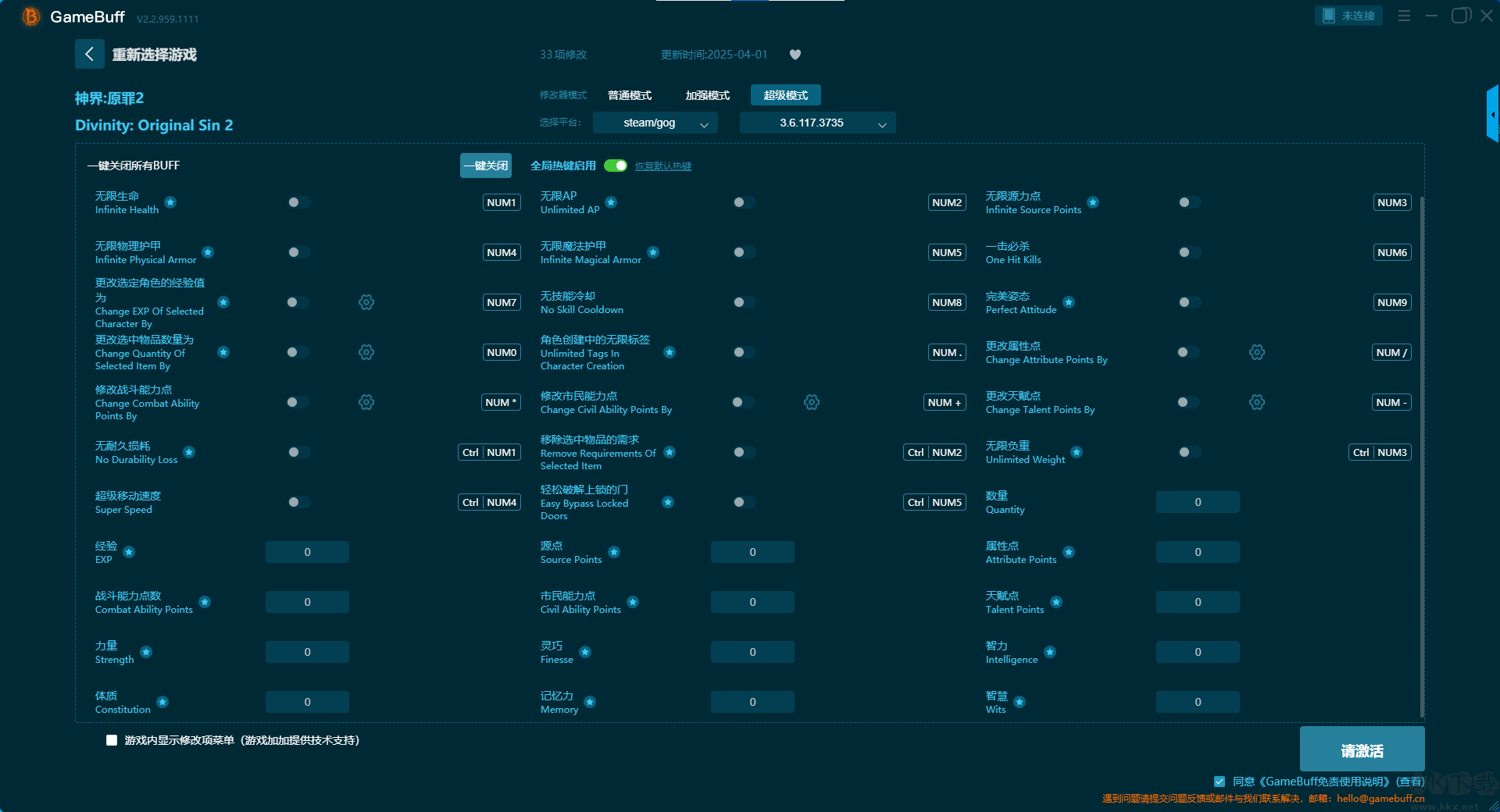 神界原罪2十四項修改器pc專業(yè)版普通模式修改功能介紹
