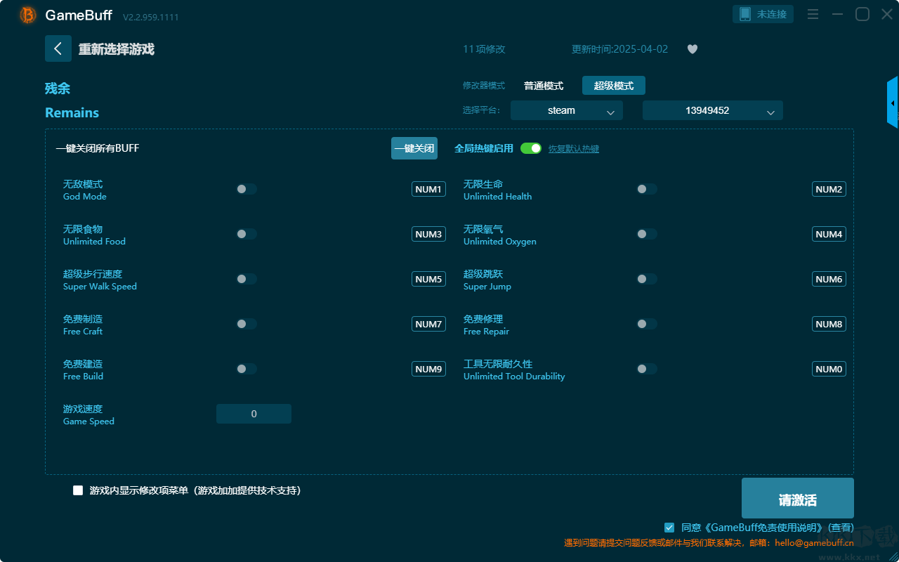殘余(Remains)八項修改器pc官網(wǎng)版超級模式修改功能介紹