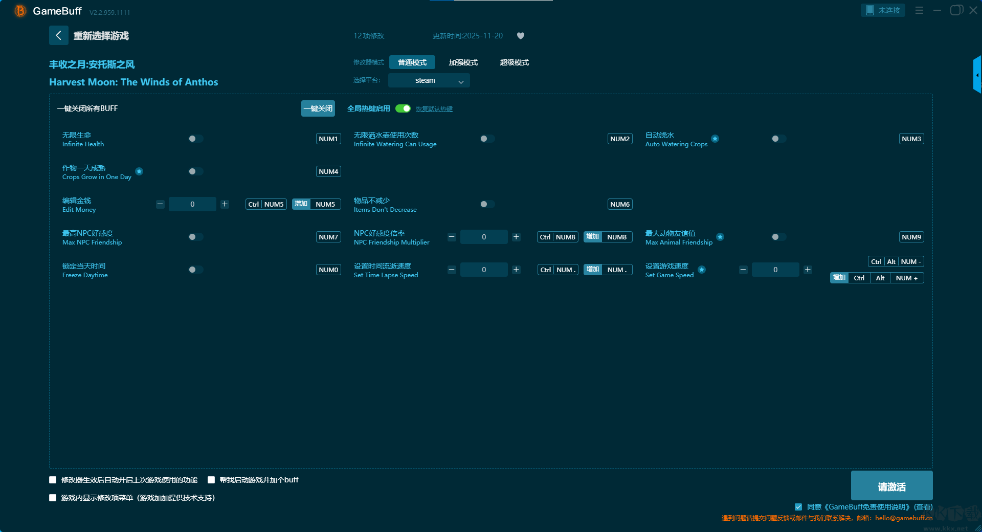 豐收之月安托斯之風(fēng)十二項(xiàng)修改器pc綠色版普通模式修改功能介紹