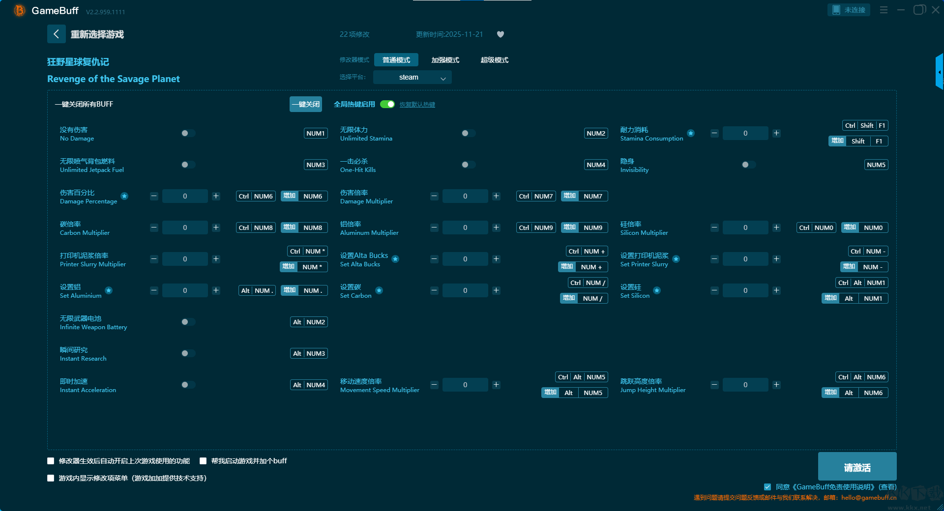 狂野星球復(fù)仇記二十二項(xiàng)修改器pc官方版加強(qiáng)模式修改功能介紹