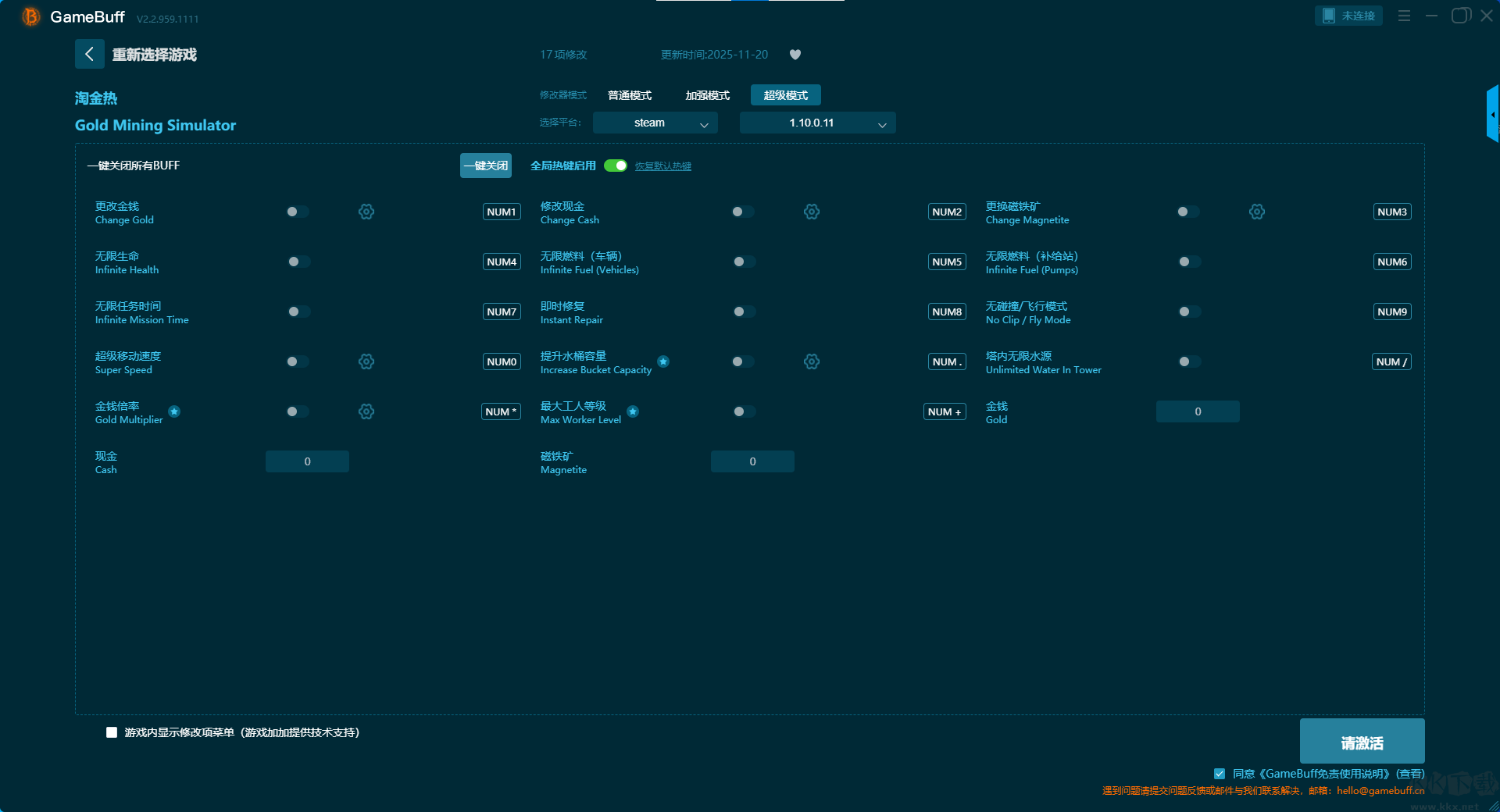 淘金熱五項(xiàng)修改器pc綠色版超級模式修改功能介紹