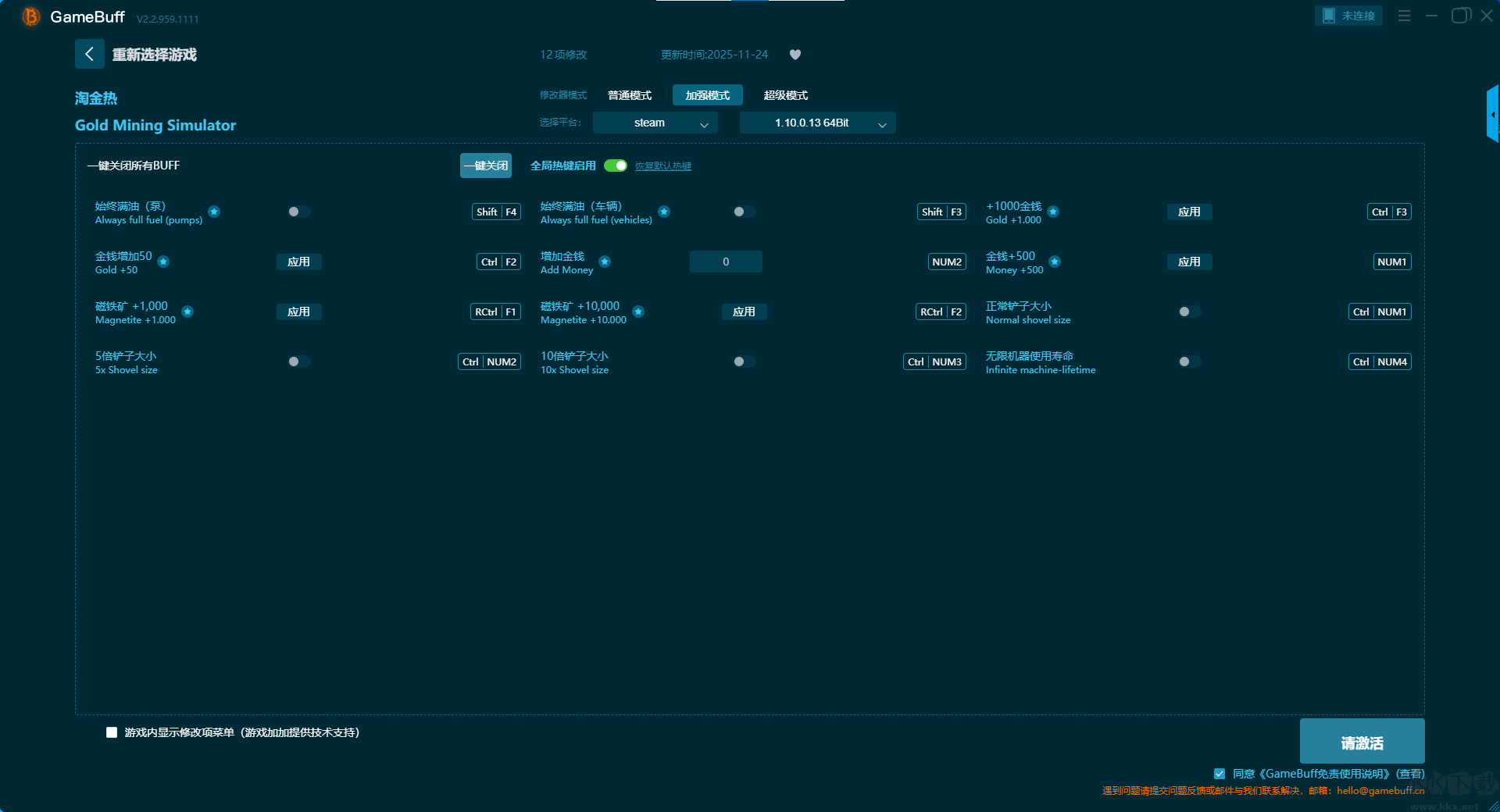 淘金熱五項(xiàng)修改器pc綠色版加強(qiáng)模式修改功能介紹