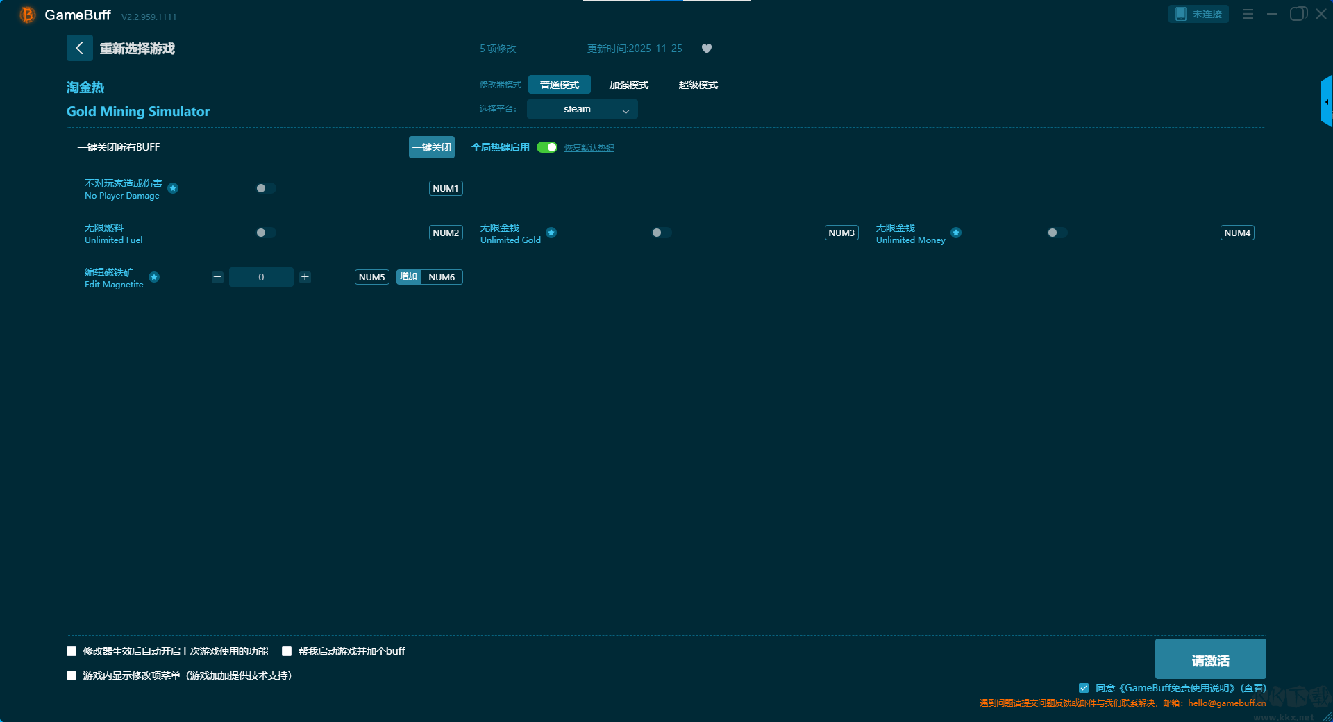 淘金熱五項(xiàng)修改器pc綠色版普通模式修改功能介紹