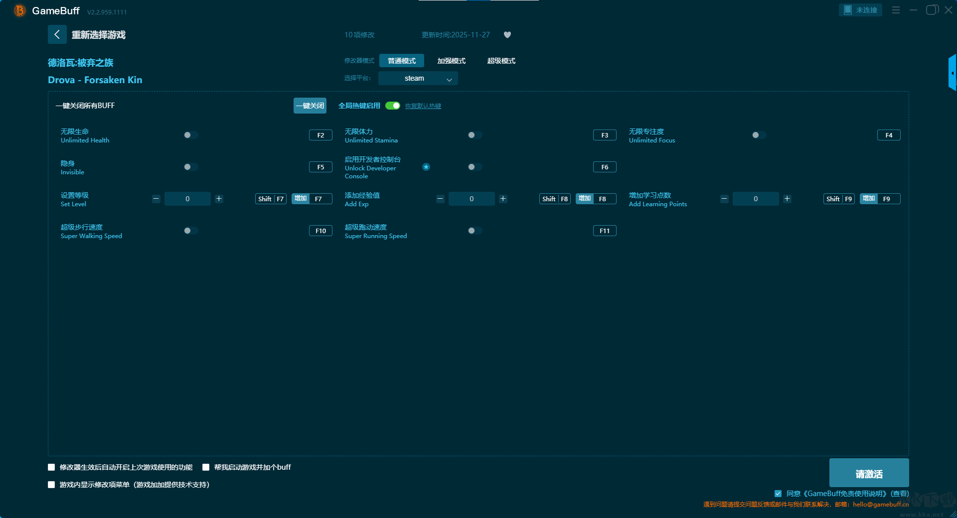 德洛瓦被棄之族十項修改器pc正式版加強模式修改功能介紹