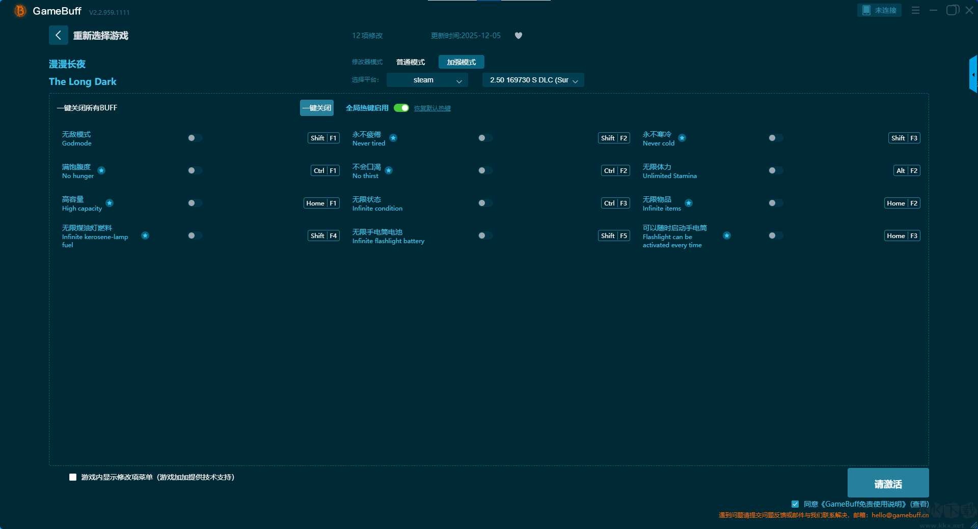 漫漫長夜十四項修改器pc正版是一款專為游戲漫漫長夜所打造的強大游戲輔助修改器,除了這款游戲該修改器還支持為7000+游戲進行游戲修改。玩家可在游戲中一鍵開啟,無限狀態(tài)、不會疲勞、無限卡路里、不會口渴、不會寒冷、無限負重、無限物品、無限體力、無限耐久度、快速制作等多項修改功能??靵鞬K下載站下載體驗一下吧。