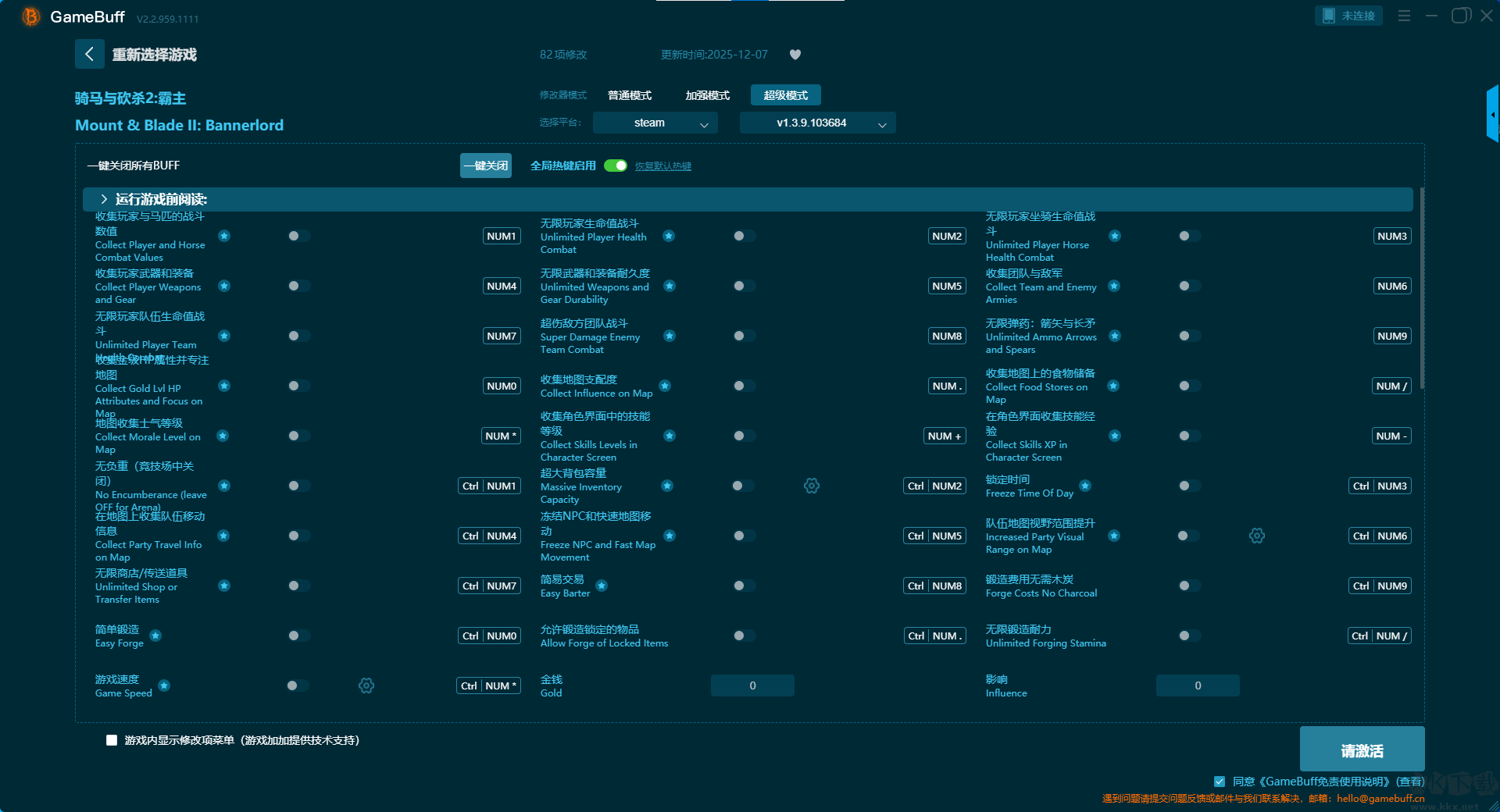 騎馬與砍殺2霸主三十三項(xiàng)修改器pc豪華版超級模式修改功能介紹