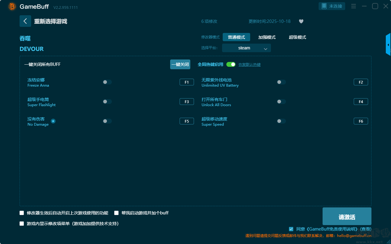 吞噬六項(xiàng)修改器pc完整版是一款專業(yè)且強(qiáng)大的游戲輔助工具,支持玩家在steam平臺(tái)使用。玩家可在游戲的游玩過(guò)程中一鍵開啟,凍結(jié)安娜、超級(jí)手電筒、沒有傷害、無(wú)限紫外線電池、打開所有車門、超級(jí)移動(dòng)速度等多項(xiàng)修改功能。需要這款修改器的小伙伴們快來(lái)KK下載站下載體驗(yàn)一下,開啟你的無(wú)敵游戲之旅吧。