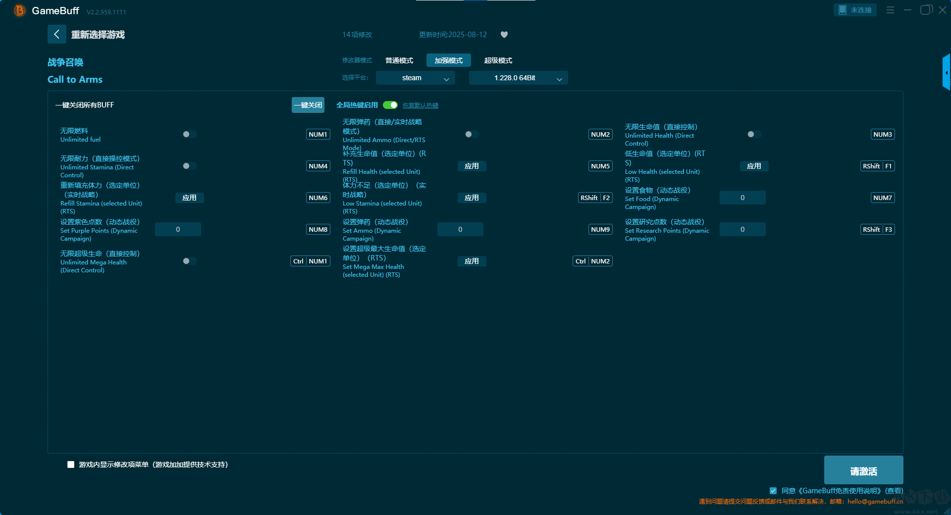 戰(zhàn)爭召喚十項(xiàng)修改器pc最新版加強(qiáng)模式修改功能介紹