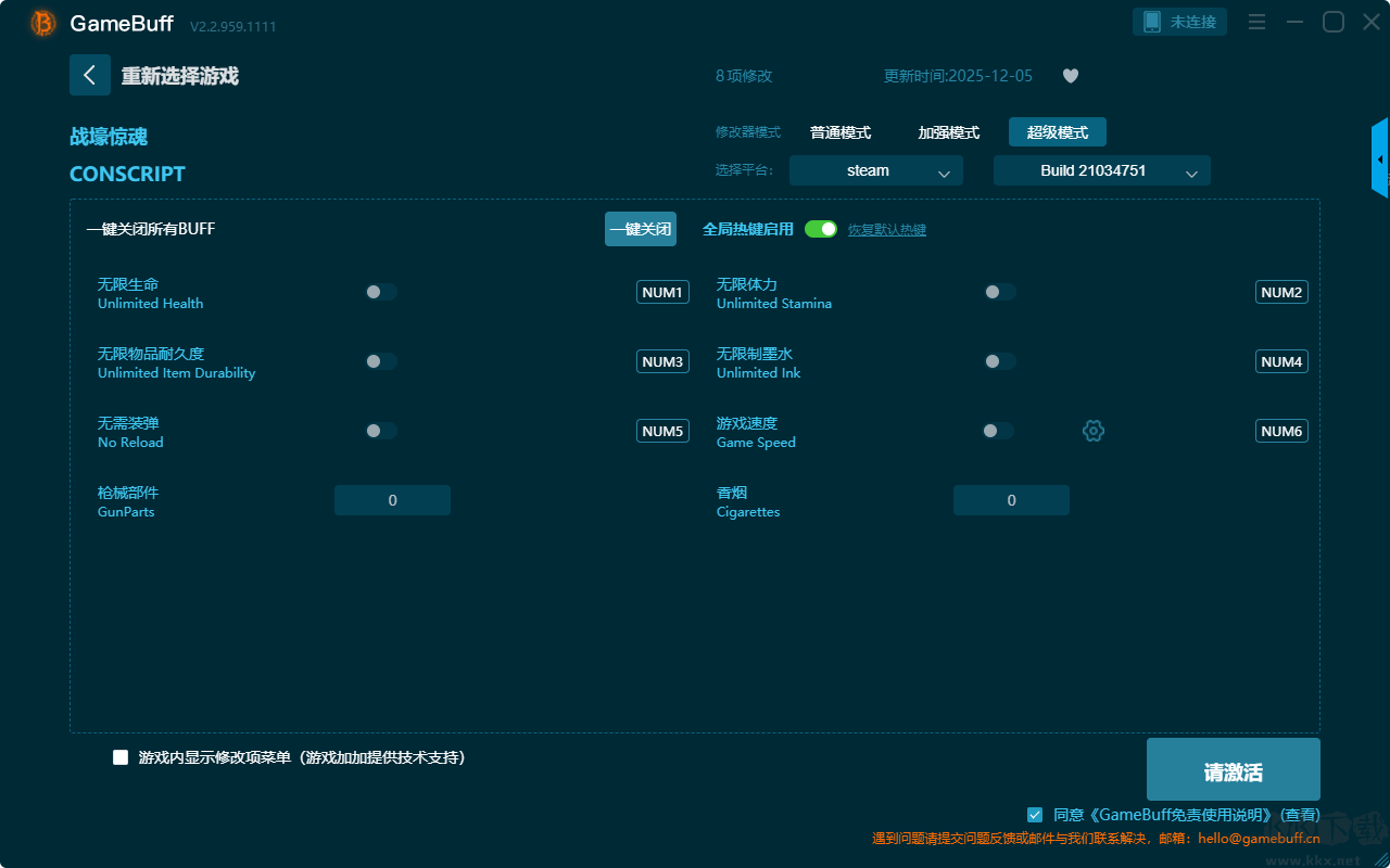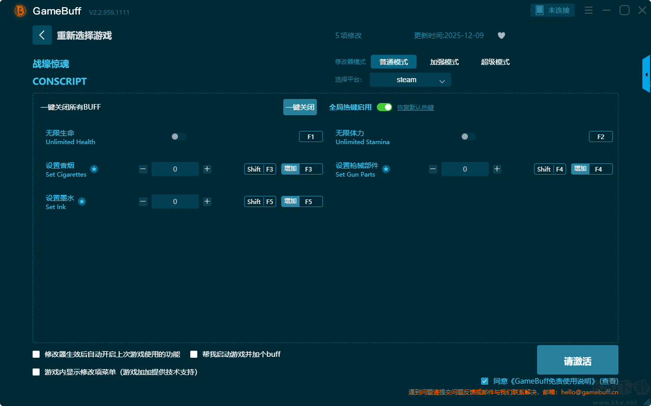 戰(zhàn)壕驚魂五項修改器pc專業(yè)版是一款專業(yè)且強大的游戲輔助工具,玩家可在這款修改器中自由的使用,絕對綠色安全。支持在游戲戰(zhàn)壕驚魂中一鍵開啟,無限生命、無限體力、設(shè)置香煙、設(shè)置槍械部件、設(shè)置墨水等多項修改功能。需要的小伙伴快來KK下載站下載這款修改器使用體驗一下吧。