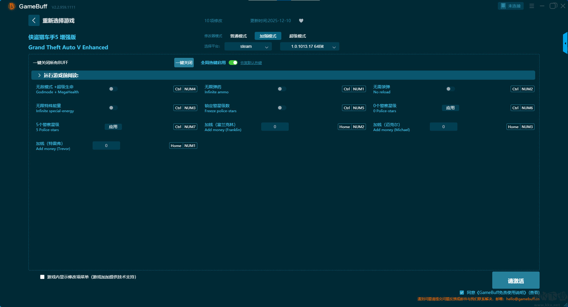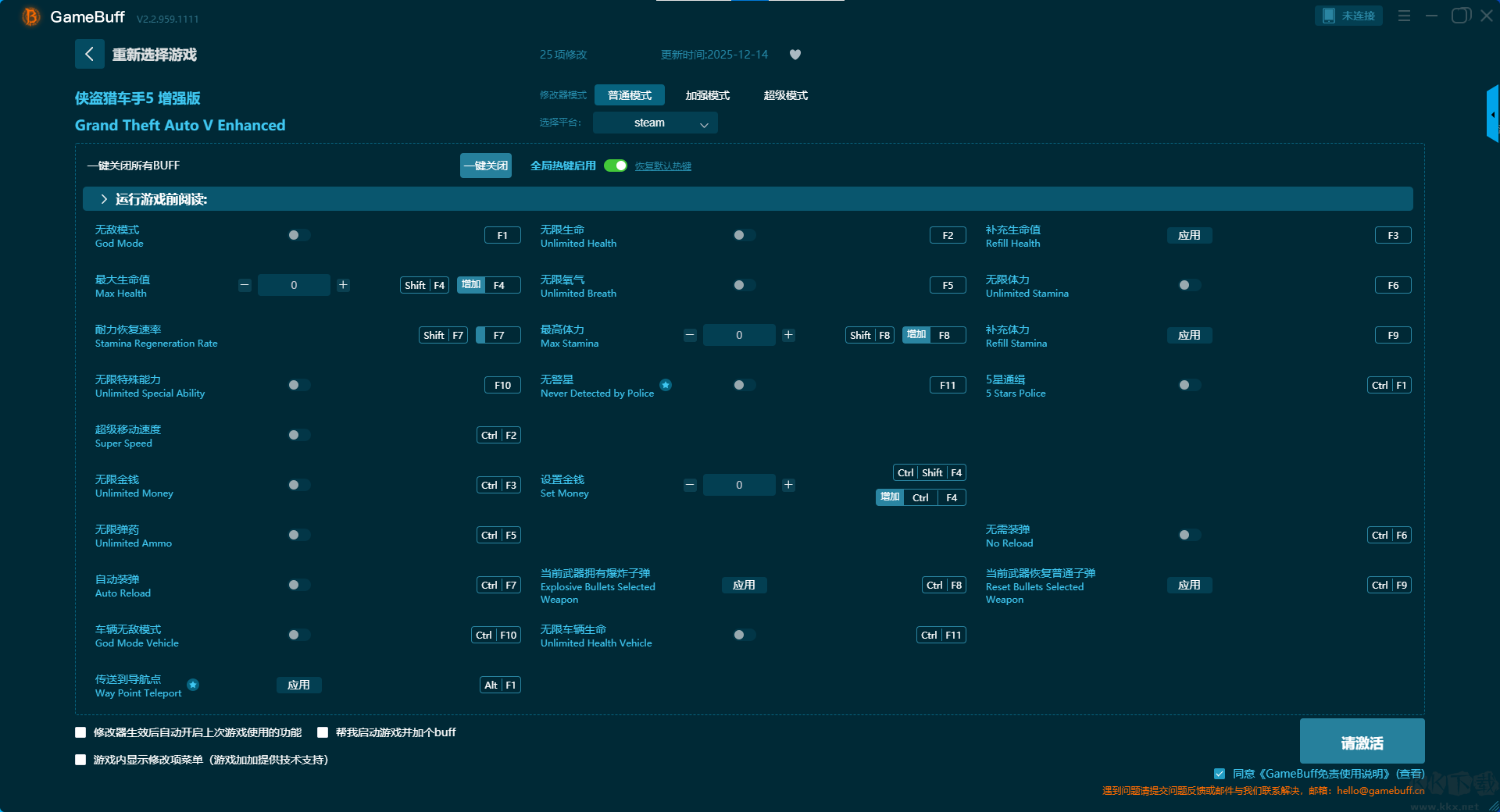 俠盜獵車(chē)手5增強(qiáng)版二十五項(xiàng)修改器