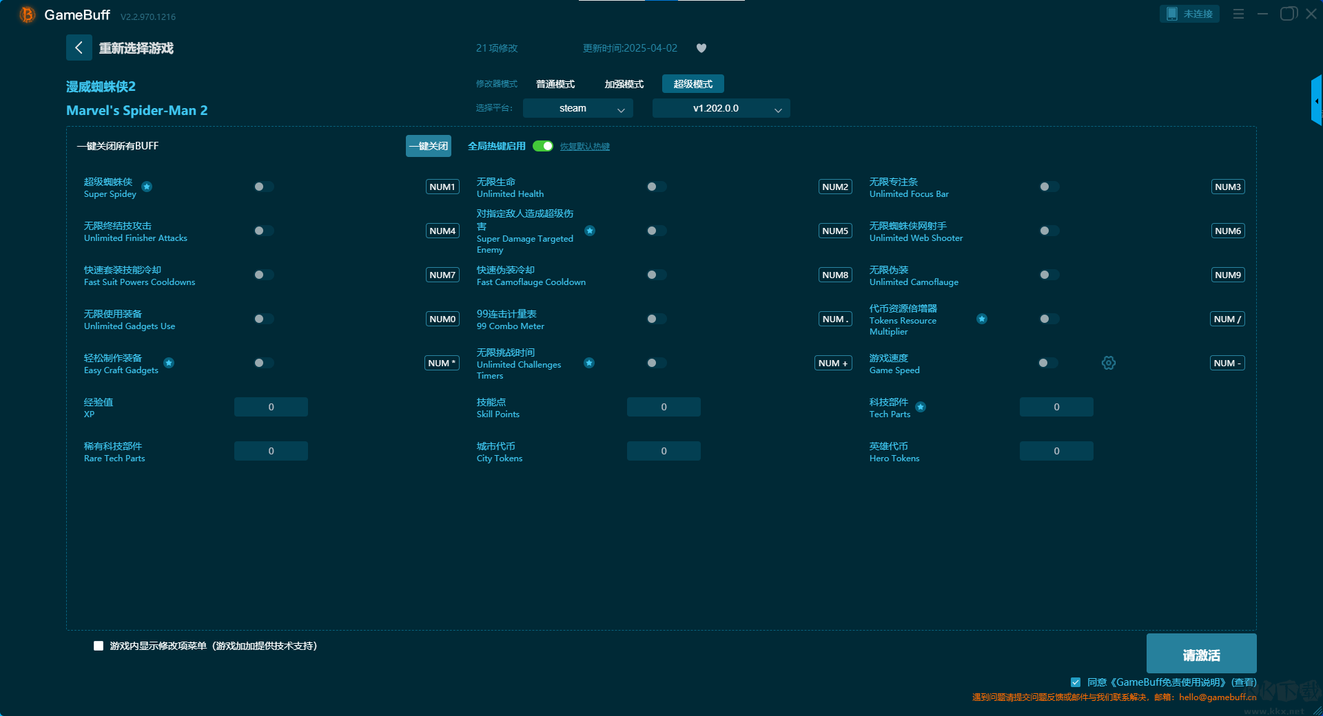 漫威蜘蛛俠2二十二項(xiàng)修改器pc綠色版加強(qiáng)模式修改功能介紹