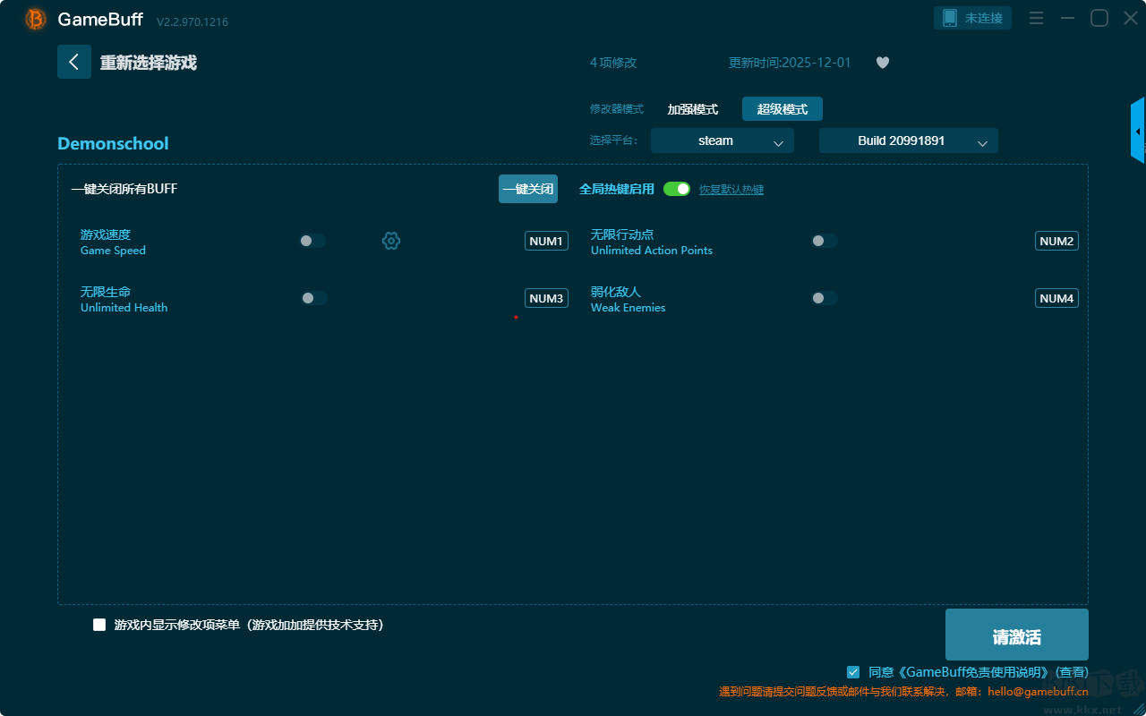 惡魔學(xué)院十項(xiàng)修改器pc正版是一款專為安卓平臺(tái)設(shè)計(jì)的游戲輔助軟件,旨在為玩家提供便捷的游戲參數(shù)調(diào)整與操作優(yōu)化功能。你可為游戲惡魔學(xué)院一鍵開啟,增加奧寶、添加學(xué)分、無限生命、無限行動(dòng)點(diǎn)、扣除奧寶、減去積分、沒有傷害、始終充滿 SP等超多項(xiàng)的修改功能。喜歡這款修改器的小伙伴快來KK下載站下載體驗(yàn)吧。