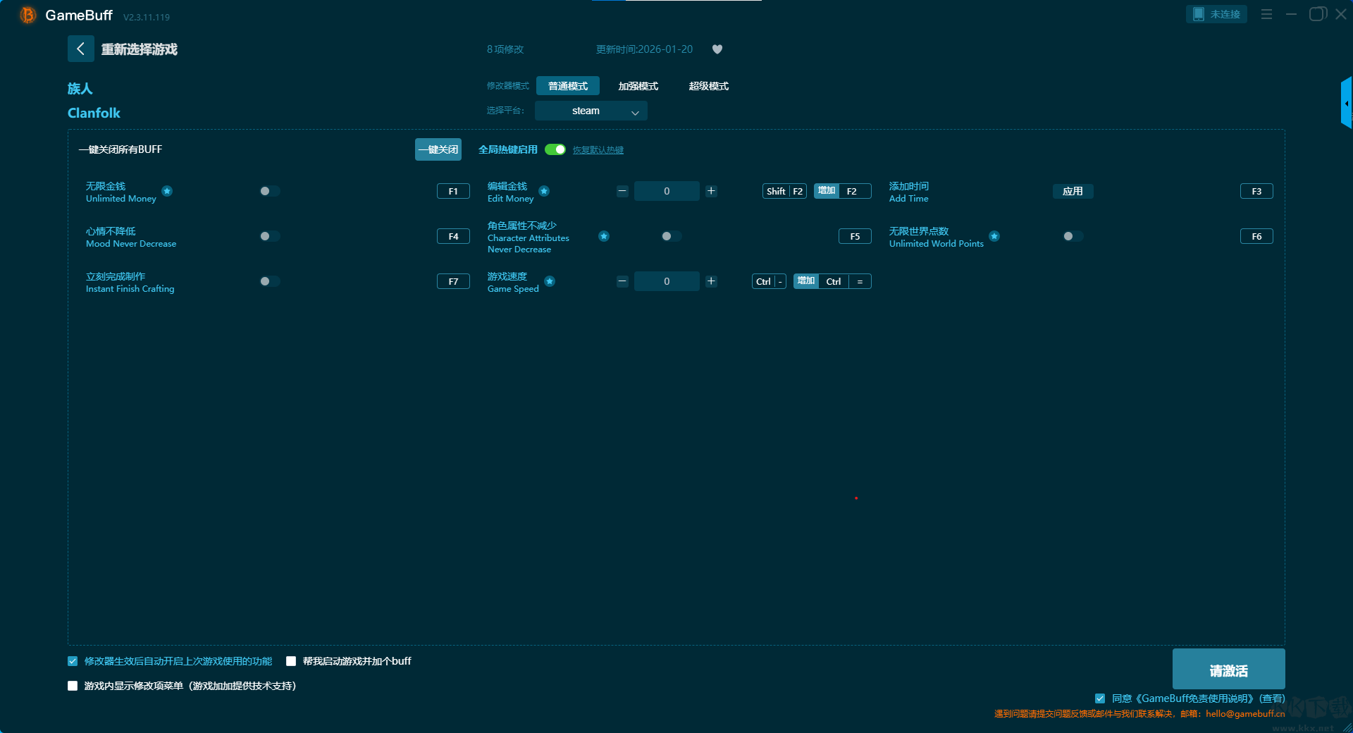 族人八項修改器pc最終版是一款集游戲加速、參數(shù)修改、資源優(yōu)化及社區(qū)交流于一體的綜合性游戲輔助平臺。你可以在這款修改器中為游戲族人一鍵開啟,無限金錢、心情不降低、立刻完成制作、編輯金錢、角色屬性不減少、無限世界點數(shù)、游戲速度等超度修改功能。打破了游戲本身的限制,賦予玩家更多掌控權,讓你以最舒適、最自由的方式暢玩。