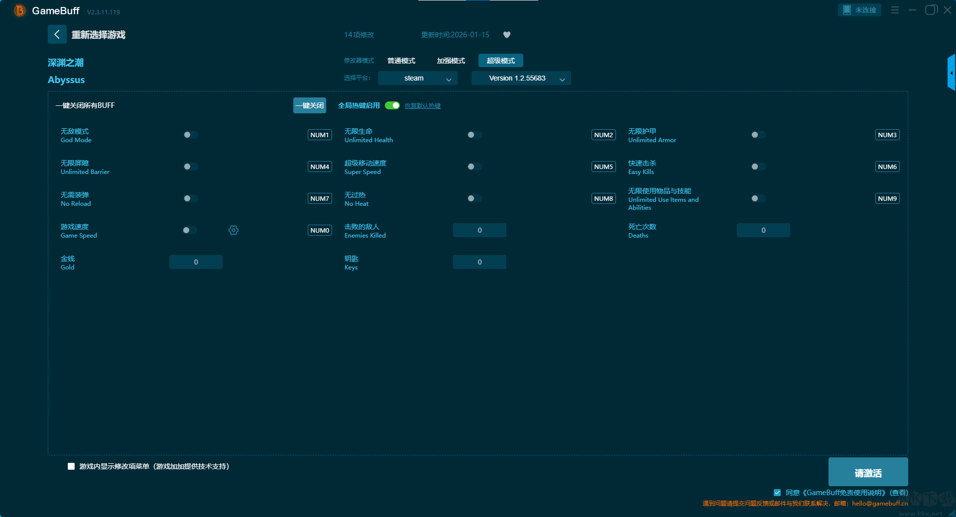 深淵之潮三十一項(xiàng)修改器pc最新版超級(jí)模式 (支持 14 項(xiàng)修改,不支持聯(lián)網(wǎng)模式)