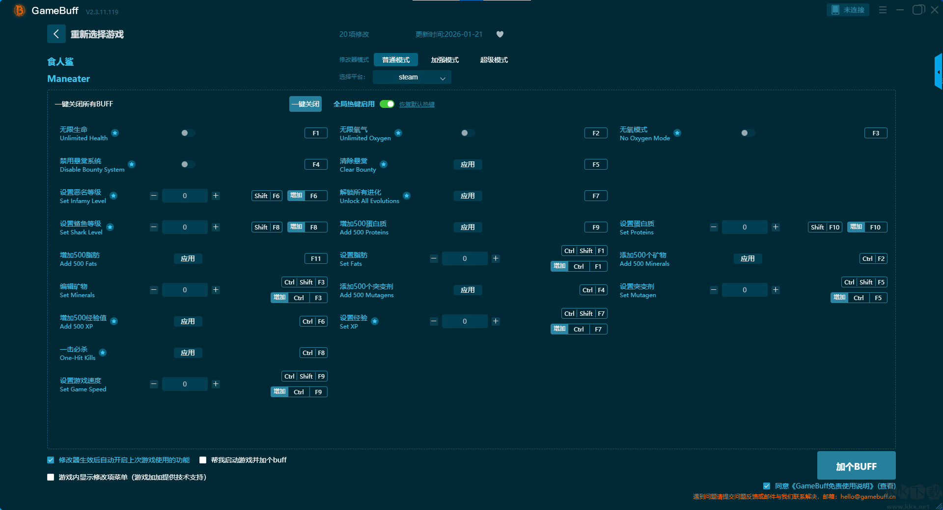 食人鯊二十項(xiàng)修改器pc最新版加強(qiáng)模式修改功能介紹