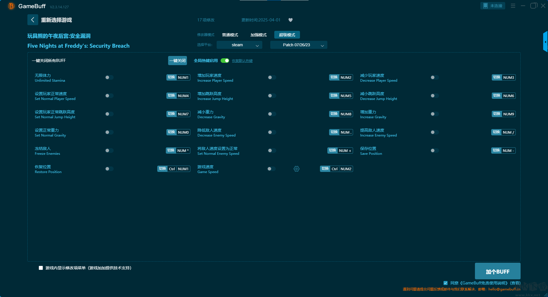 玩具熊的午夜后宮安全漏洞27項修改器pc正版普通模式修改功能介紹