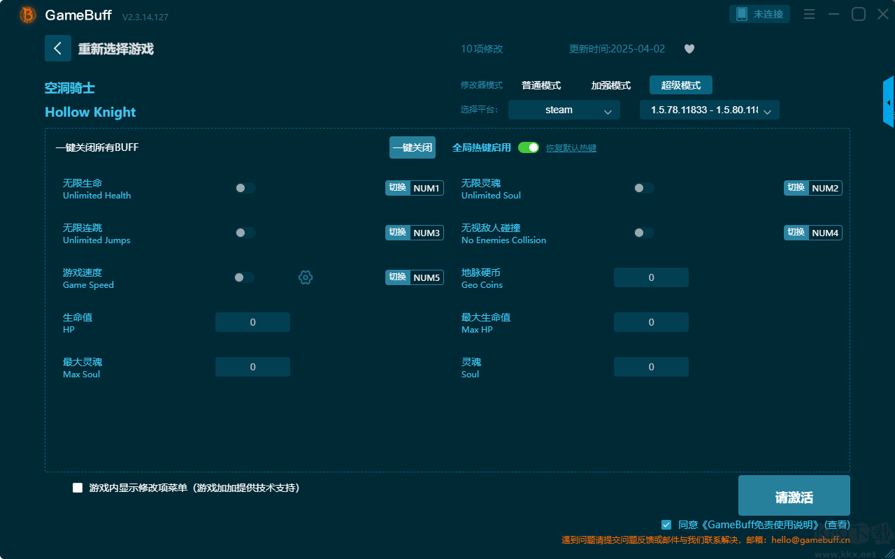 空洞騎士四項修改器pc綠色版超級模式修改功能介紹