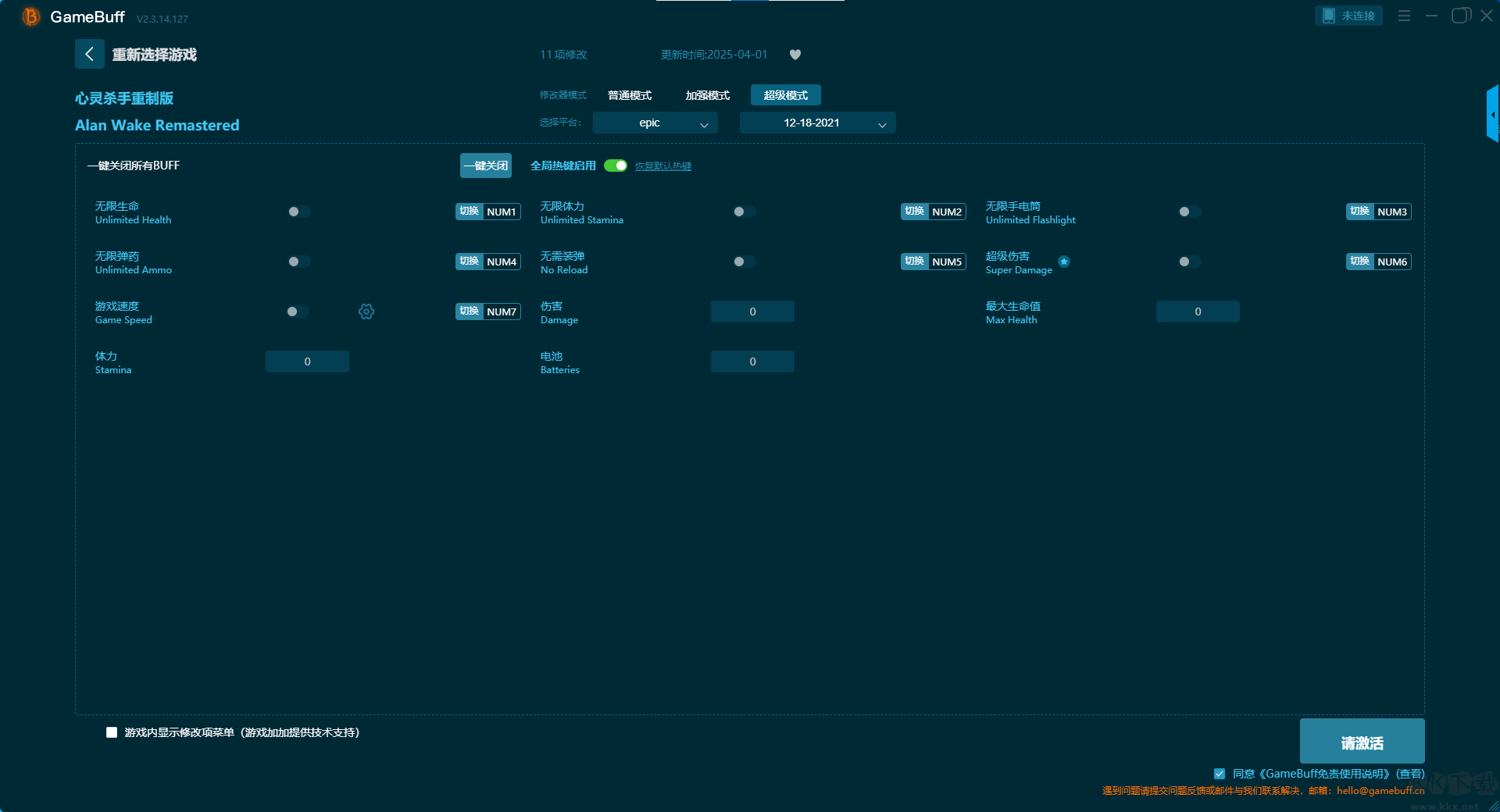 心靈殺手重制版七項修改器pc免費版超級模式修改功能介紹
