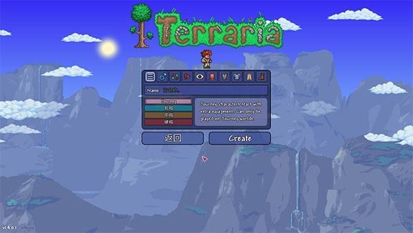1、首先需要進(jìn)入Terraria游戲中建立一個(gè)角色,要是之前有角色可以不用再重新建立;