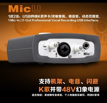 USB2.0高速數(shù)據(jù)傳輸及USB直接供電*內(nèi)建虛擬通道實(shí)時(shí)監(jiān)聽干濕信號(hào)(如人聲+效果),全雙工錄音和同時(shí)錄音回放*1路(大二芯/大三芯/卡農(nóng))復(fù)合式 輸入接口,帶獨(dú)立增益調(diào)節(jié)旋鈕和48V幻像供電,適合電容/動(dòng)圈話筒 和樂器(如吉它)