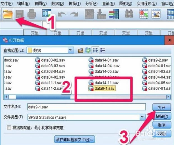 1、打開(kāi)SPSS軟件后點(diǎn)擊右上角的【打開(kāi)文件按鈕】打開(kāi)你需要分析的數(shù)據(jù)文件